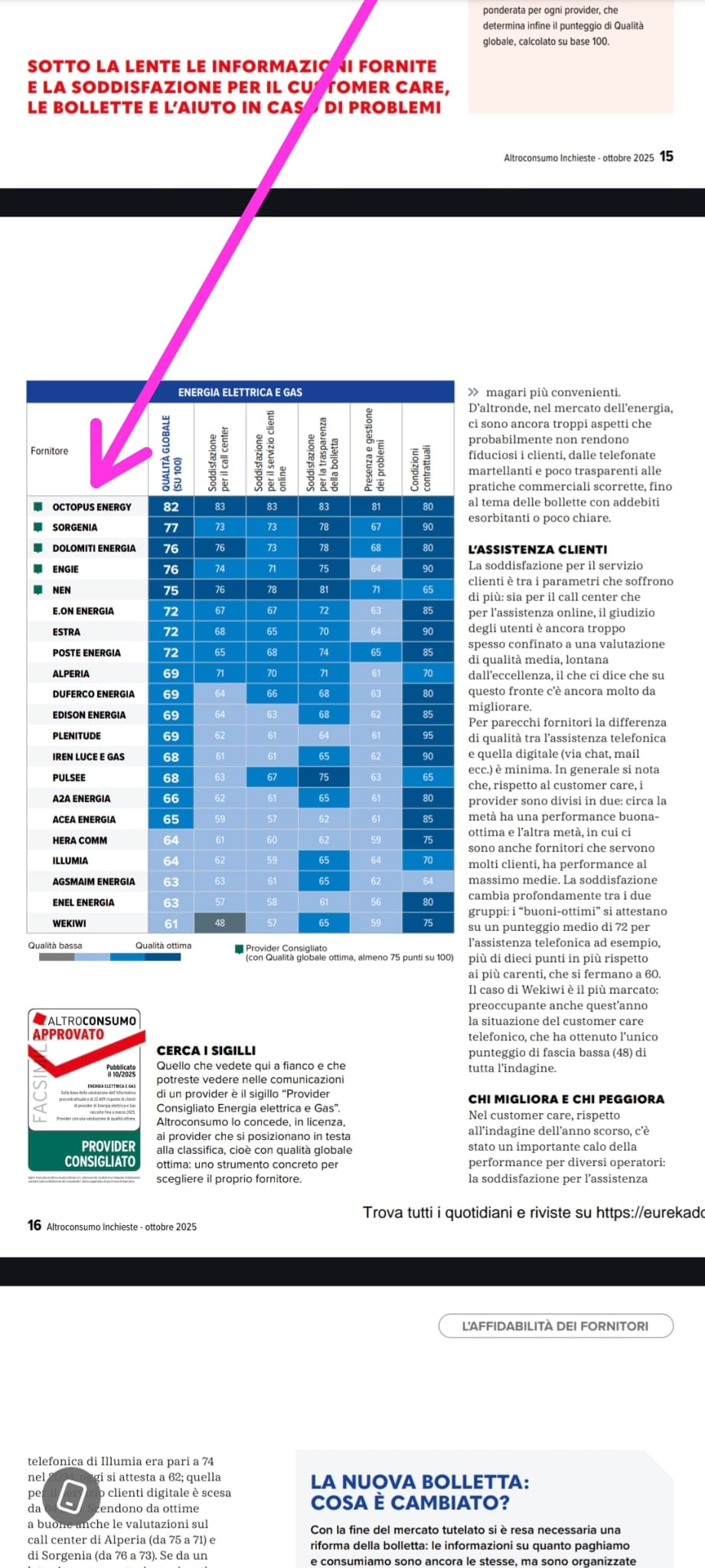 Il miglior fornitore di energia elettrica / gas , articolo Altroconsumo / Inchieste mese di ottobre 2025, le tariffe più basse del mercato libero, ricevi il bonus di benvenuto 30 EURO sulla prima bolletta:
